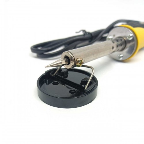 Компактную подставку можно убрать в блистер паяльника, или в ящик стола. Просто положите паяльник на подставку, чтобы он не опрокинулся на поверхность стола.